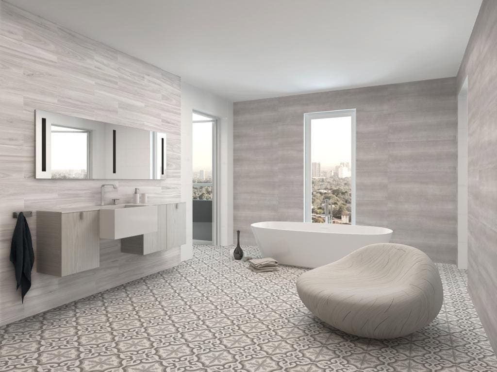 A modern bath pairs function with calm. Tile makes that possible by shaping planes, reflection, and rhythm.